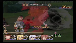 The "Clumsy Assassin" has made her way out of the underground and is looking to make good on her promise to kill the Chosen. The Assassin can combo like crazy, so be prepared to guard and then strike back at her. If Genis has any area spells yet, like Spread/Aqua Laser or Stalagmite, he can use these to great effect. Despite being a Wind Guardian, the Assassin's sidekick isn't weak against earth, just to note. Have Raine cast Barrier on everyone, backing up with First Aid, while Lloyd uses combos and then Tempest on the Guardian. Overall, this battle is fairly simple due to the bosses' low HP, and once one is defeated, ganging up on the other ends things quickly.