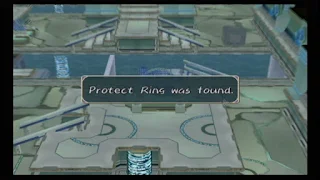 Down the stairs, push the stone block on your right down into the water, then use the Sorcerer's Ring to charge the pillar to the upper-left. Activate the nearby control panel to drop the platform above that, with the blocks positioned correctly, forms a bridge to the other side. Move around to the bottom of the room and charge the pillar there, then use the control panel in the center of the room to drain the water. Directly behind the bluish control panel, on the ground floor, search for a hidden chest with a Protect Ring in it. This one-of-a-kind accessory reduces physical damage received, but at the expense of making the character weak against all elemental magic. It absolutely has its use, but only in certain situations. Once you have the Protect Ring, descend the stairs nearby and push the stone block on the blue switch to lower the barrier, then shock the pillar to open the exit to the south.